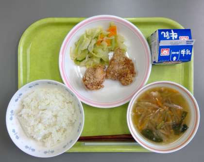 給食でも大人気の鶏の唐揚げ!みんな嬉しそうにほおばっていて残食もほぼゼロでした。