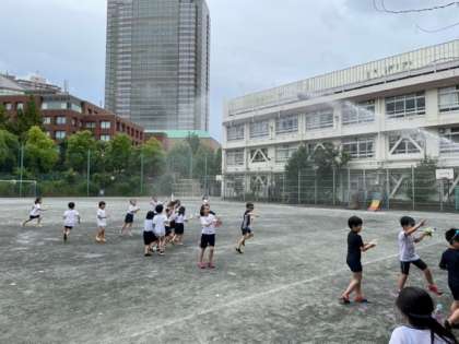 きょうは、みずあそびたいかい。あついなつだからこそ、みずがとてもきもちいいです。ペットボトルやケチャップのいれものをつかって、オリジナルみずでっぽうをつくりました。ともだちとみずをかけあったり、かみテープをねらってみずをとばしたり、がくねんでなかよくみずあそびをして、なつをかんじました。