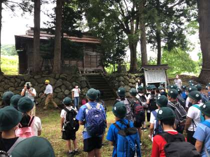 到着しました!入村式の後はそれぞれの宿舎に移動します。いよいよ自然体験教室が始まります!