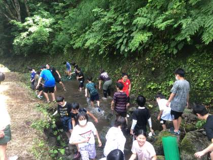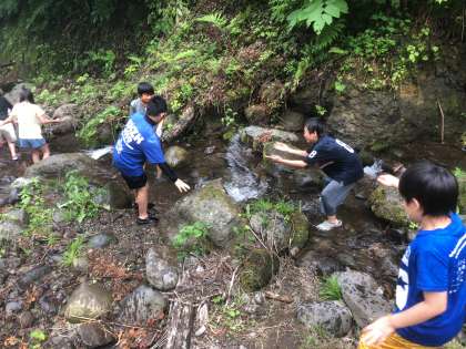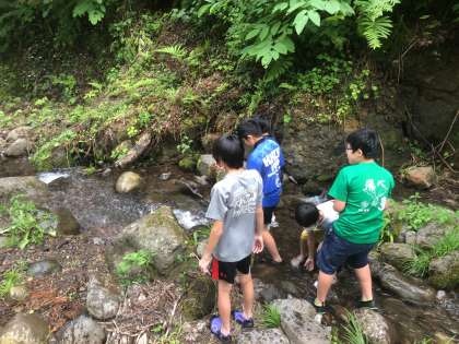 魚つかみの後は川遊び。水が冷たくて気持ちいい!飯山の自然を満喫しています。