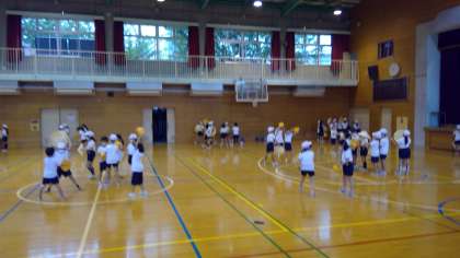 運動会時程が始まりました。2年生と1年生は今日から一緒に、花笠音頭の練習を行います。1回目の練習では、お兄さんお姉さんとして優しく教えることができました。