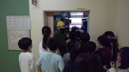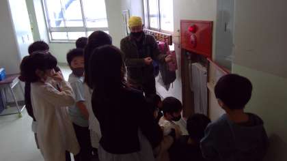 先週は自分たちで学校の防火設備について調べました。今日は主事さんに消火栓や備蓄倉庫、ポンプ室など見せていただきました。また、主事さんたちは災害が起こったとき、消火活動はもちろん、教室やトイレに残っている児童がいないか点検をしてくださるそうです。心強いですね。