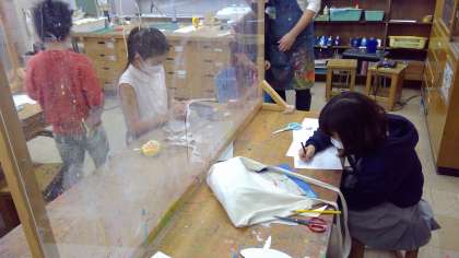 こちらはEXPOの作品つくりがひと段落して、なにやら楽しげな工作をしています。