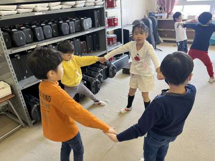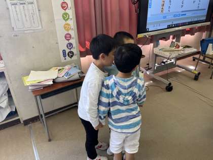 音楽の授業では「ひらいたひらいた♪」の歌を習いました。つぼんだ様子やひらいた様子を、体を使って上手に表現しました。みんな、ニコニコ楽しく活動できました。