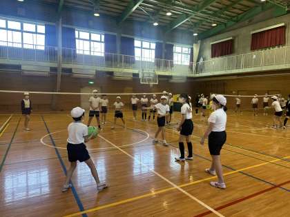 学年合同でキャッチバレーボールに取り組みました。どこに落としたら得点につながるか、どう守ったらボールを落とさずに得点を防げるか、ネット型の特性をよく理解して、楽しみながら運動に取り組むことができました。