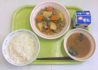 ・ごはん ・肉じゃが ・なめこのみそ汁 ・牛乳