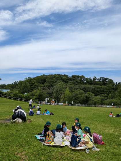 良い天気に恵まれ、気持ちの良い草の上でお弁当タイム!