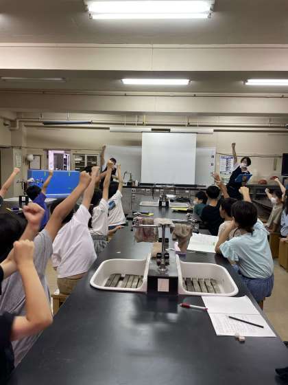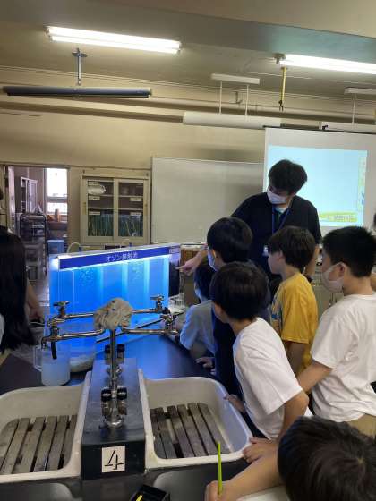 オゾンや生物活性炭の力で、においのない水になる実験を行っていただき、子どもたちは興味津々で観察していました。