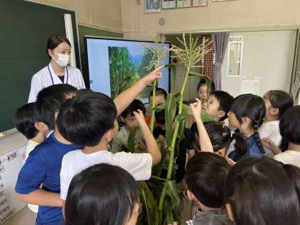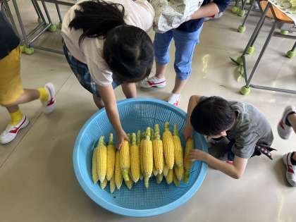 食育でとうもろこしの皮むきを行いました。