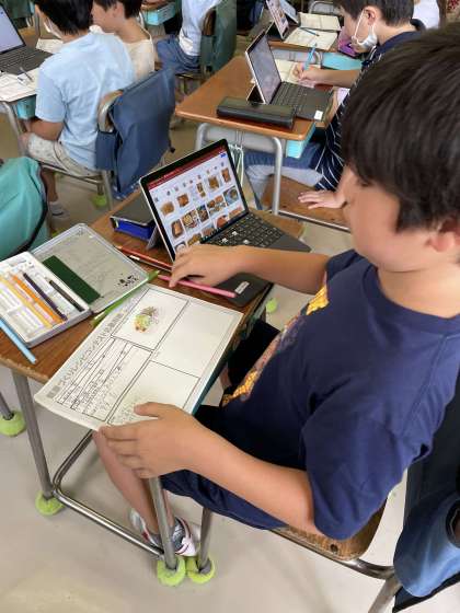 4年生は、山口栄養士さんをお迎えし、食育の学習として、健康を考えたお弁当レシピ作りを行いました。