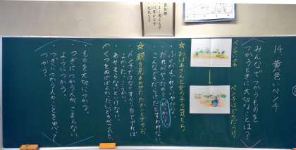 「黄色いベンチ」というお話を通して、みんなのものを雑に扱うと他の人は「悲しい」「嫌だな」という気持ちなることを確認しました。
