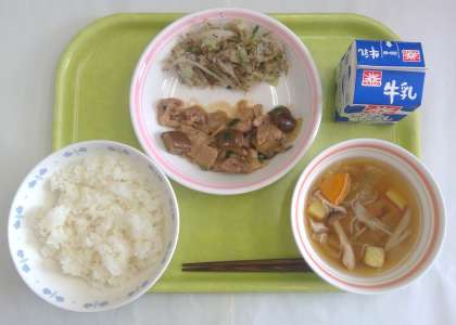 ・ご飯 ・秋ナスと豚肉のみそ炒め ・ゆかり粉和え ・秋の味覚汁 ・牛乳