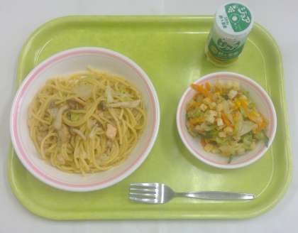 ・秋鮭ときのこのレモンしょうゆパスタ ・クルトンサラダ ・ジョア(マスカット)