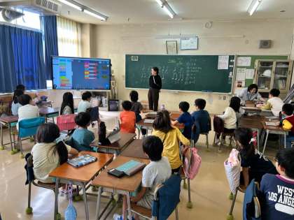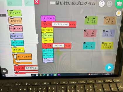 班ごとにテーマを決めて、プログラミングで音を繋げてリズムを作りました。