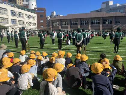 今日の4時間目は、マーチング発表会でした。1年生は初めて見ました!