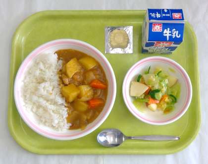 6年生の英語の授業で、オリジナルカレーを考えて英語で発表する「Let's think about our food.」の中から選ばれたカレーです。さつまいもの甘みとカレーの相性が抜群で大人気でした。他にも給食で出したいと思う素敵なカレーがたくさんありました♪