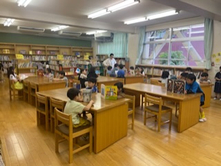 図書室の使い方を図書支援員の先生から教えていただきました。その後は、ゆっくり読書を楽しみました。