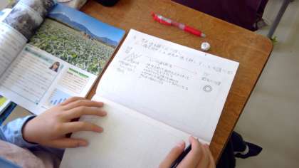 今日の社会科は荒れ地をどのように開拓したか、時間的な思考を働かせた授業です。