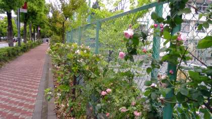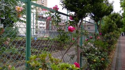 5月5日地域、保護者の方々が校庭に沿ったバラの垣根の周りをきれいにしてくださいました。バラの花の美しさが際立つようになりました。ありがとうございます。色鮮やかなバラが見頃です。