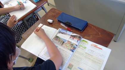 今日の社会科では、自然の恵みを生かした取組を調べています。