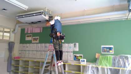 1年生から6年生までの各教室のエアコンの付け替え工事をしています。エアコンが新しくなります。換気をしながら快適に学習に取り組めます。前期後半は、さらに授業に集中して勉強ができますね。