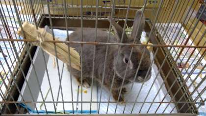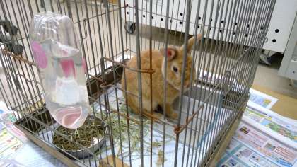 とても暑い日が続くので、ウサギの「チャチャ」と「クッピー」は職員室のエアコンの効いた部屋で過ごしています。