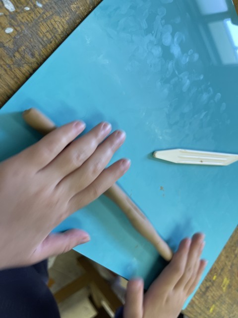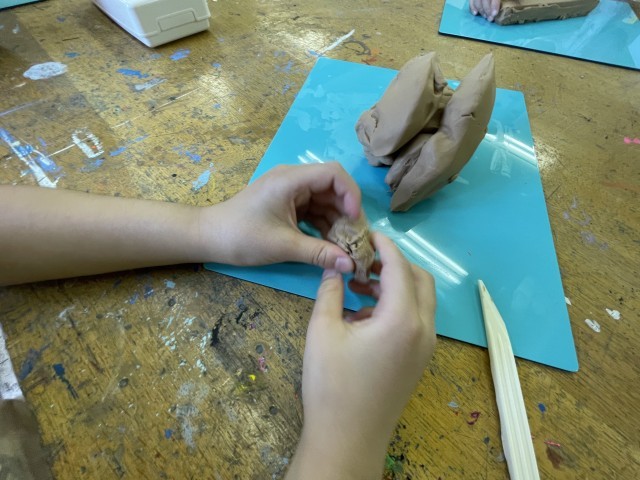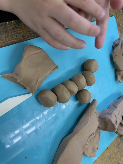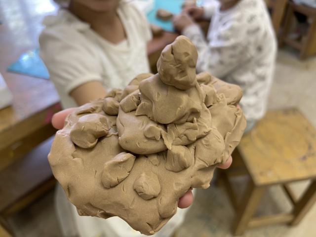 図工でねんどを使っての学習を行いました。手を使って色々な形に変え、どんなものを作れるのか考えながら活動しました。