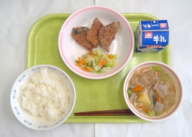今日は宮城県産のかつおです。にんにく、しょうが、砂糖、しょうゆ、玉ねぎに漬けてしっかり臭みをとりました。衣には米粉を使用したので、油の吸収率が低くサクッと仕上がりました。