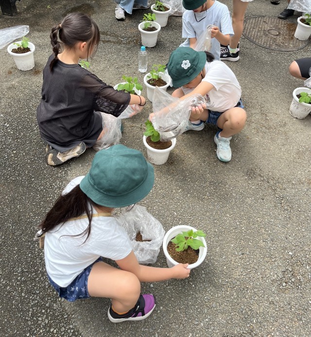 順調に成長しています。帰りに水やりを楽しそうにしている様子が印象的です。