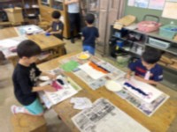 お花紙の形や、並べたり重ねたりする組み合わせを考えました。自分の作品を集中して作...
