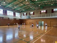 体育ではテニピンを行いました。ラケットもみんなで手作りをしました。待っている時は...