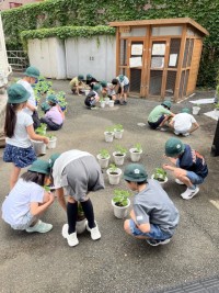 理科の学習では春の生き物を探しました。ガーデンや正門近く、専科棟の花壇など色々な...