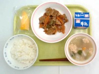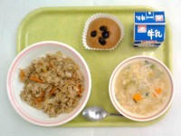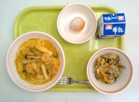 ★兵庫県給食★・そばめし・播州手延べそうめん・黒大豆入り黒糖蒸しパン・牛乳