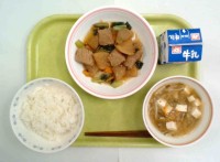 ・ご飯・豚の角煮・豆腐とあおさのみそ汁・牛乳