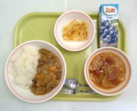 ・カレーうどん・ジュレサラダ・冷凍みかん・牛乳今日は小ぶりのみかんだったので、産...