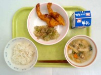 ・発芽玄米ご飯・えびフライ・キャベツのおかか梅和え・あさりのみそ汁・牛乳