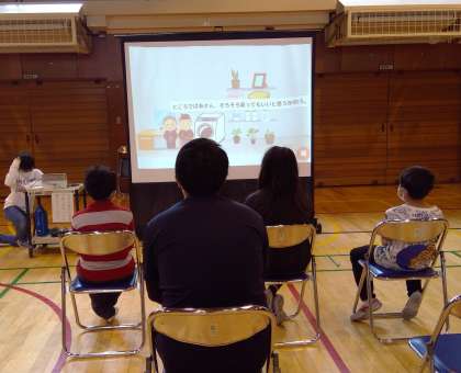 6年生の総合の発表会の様子です。常磐松小学校では、3年生から6年生の総合的な学習の時間に海洋教育を位置付け、講師の先生とともに段階的に学びを深めています。6年生は4年間の学びの集大成として、他学年に向けて発表会を行いました。様々な学びのコーナーがあり、素晴らしい発表の場となっていました。他学年の感嘆の声と6年生の自信に満ち溢れた表情が印象的でした。