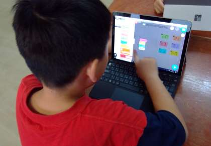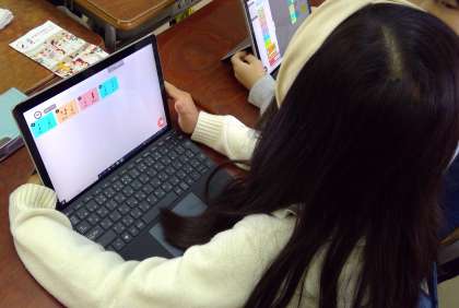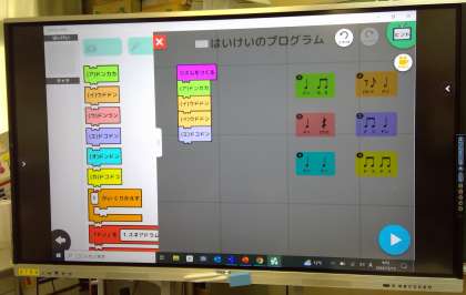 Kid Vallyによる出前授業がありました。2年生の音楽では、テーマを決めて、テーマに合わせたリズムをプログラミングする授業が行われていました。教室のあちらこちらからは、軽快なリズムが響いていました。