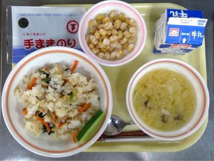 また今年は、自分で巻いて食べる「恵方巻き」にしました。今年の「恵方」は、「東北東」だそうです。「手巻きのり」に、「ちらし寿司」や、「きゅうり」を巻いて作ります。「福を巻き込む」という意味が込められていて、食べるときは、恵方を向いて、だまって食べると良いとされています。