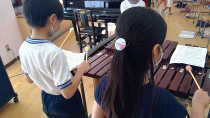 3年生の音楽の授業です。楽器の演奏をしていました。音楽会に向けての練習も、来週から始まります。前向きに練習に取り組んでほしいと思っています。