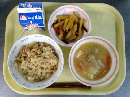 高野ご飯 つみれ汁 じゃが芋のきんぴら 牛乳