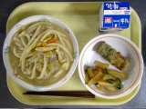 味噌煮込みうどん ちくわの磯部揚げ ピリカリ漬け 牛乳