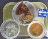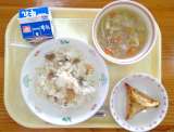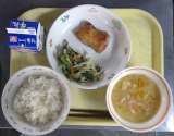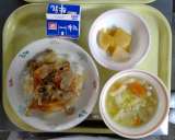 ごはん キャベツともやしのみそ汁 鶏肉の照り焼き 磯和え 牛乳