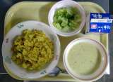 カレーピラフ さつま芋のポタージュ グリーンサラダ 牛乳