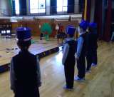 2年生の学芸会練習の様子です。演目は、「どろぼう学校」です。ある場面の練習では、...