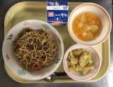 ソース焼きそば 青のりポテト フルーツポンチ 牛乳
