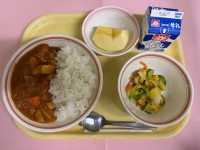 牛乳チキンカレーライスコーンサラダりんご