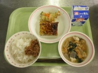 【献立】ご飯、牛乳、エコふりかけ、ひじき入り卵焼き、浅漬け、けんちん汁【きゅうし...