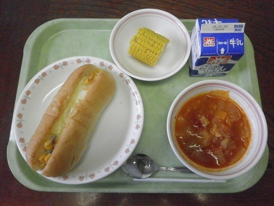【献立】コーンマヨネーズドッグ、牛乳、ミネストローネ、ゆでとうもろこし