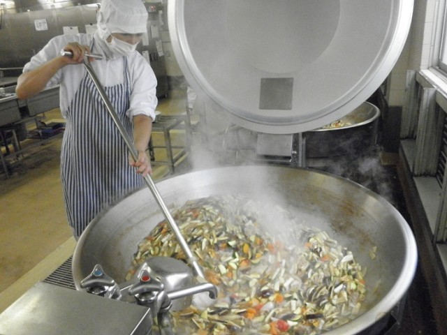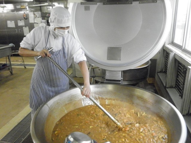★「今日は夏休みのカレーだ!」という声が聞こえました。そのあと「あ、間違えた、夏野菜のカレーだ」と言い直していましたが、その気持ちは十分に伝わってきました。給食室は今日も酷暑でしたが、無事安全に給食を提供することができました。